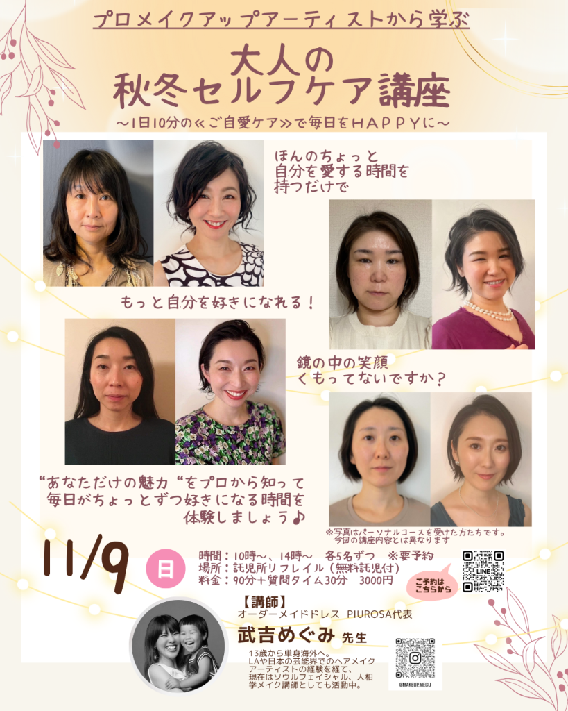 毎日忙しい女性のための【簡単】で【気持ちが上がる↑↑】セルフケアとメイク術をプロのメイクアップアーティストから学びませんか😉